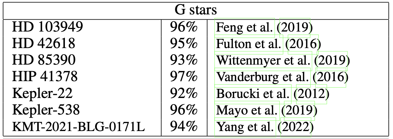 List of planetary systems with a probability of harbouring an Earth-like planet is larger than 90%, according to our Random Forest Classifier. Adapted from Davoult et al. (2025), Astronomy and Astrophysics, in press, DOI: 10.1051/0004-6361/202452434